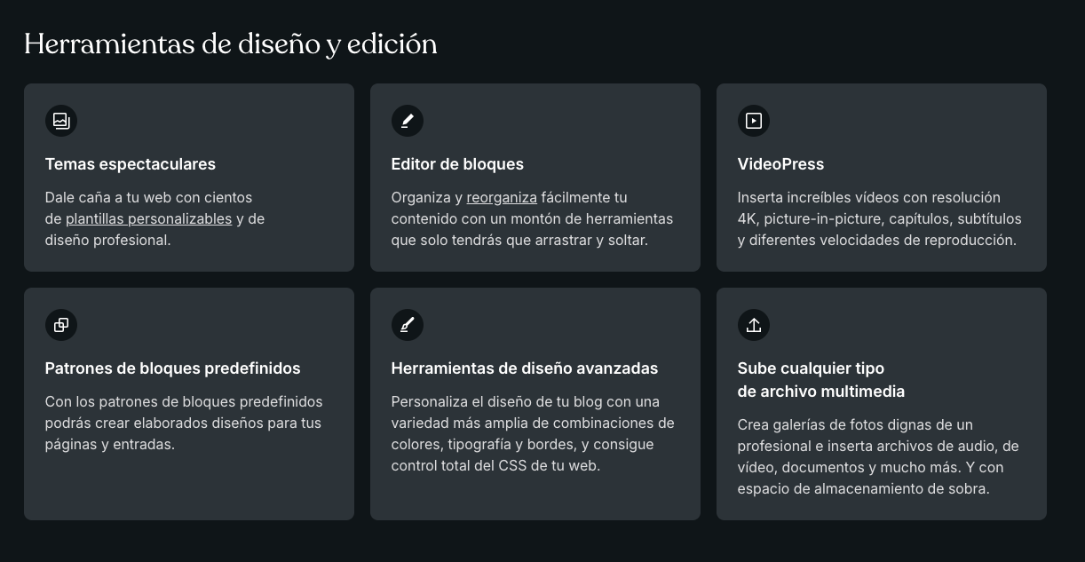 - WordPress.com (gestionado): es un servicio donde parte de esa operación la asume el proveedor, con distintos planes y límites.