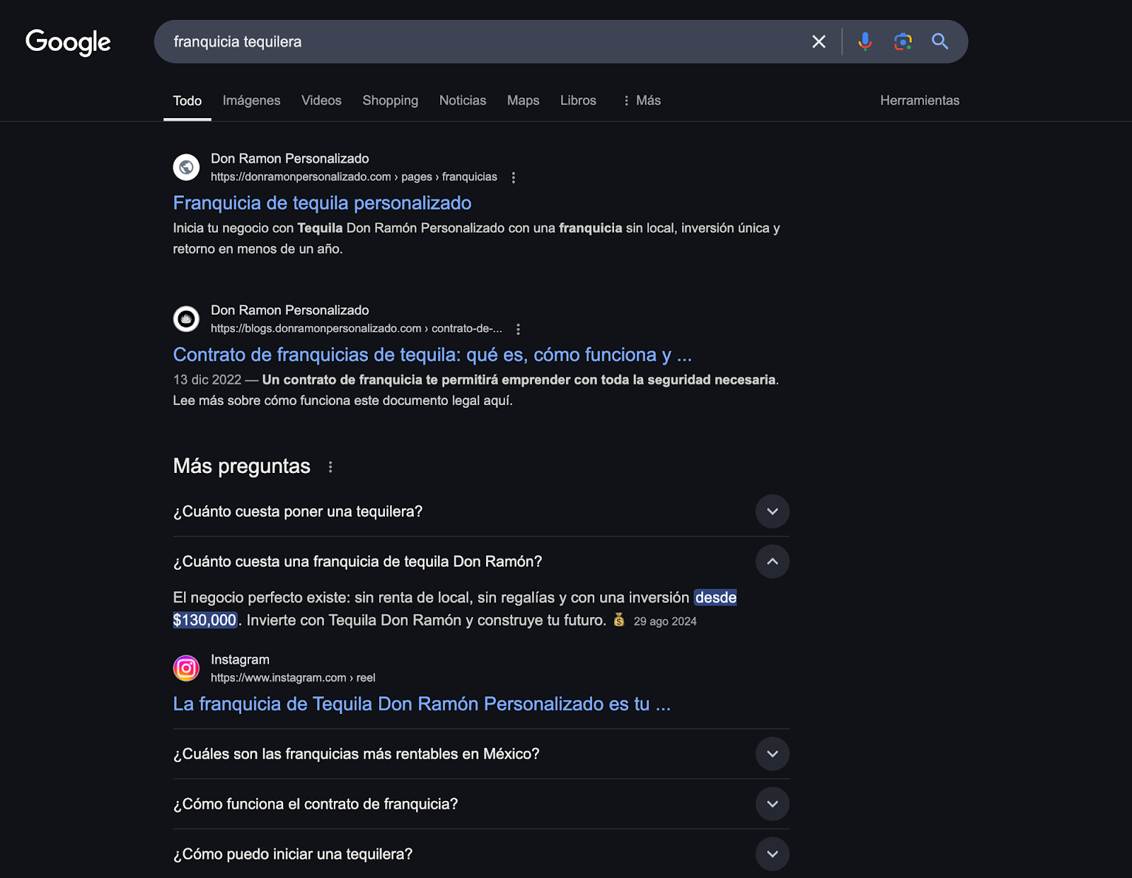 Además, logró posicionarse como referente global en la búsqueda “tequila personalizado”.